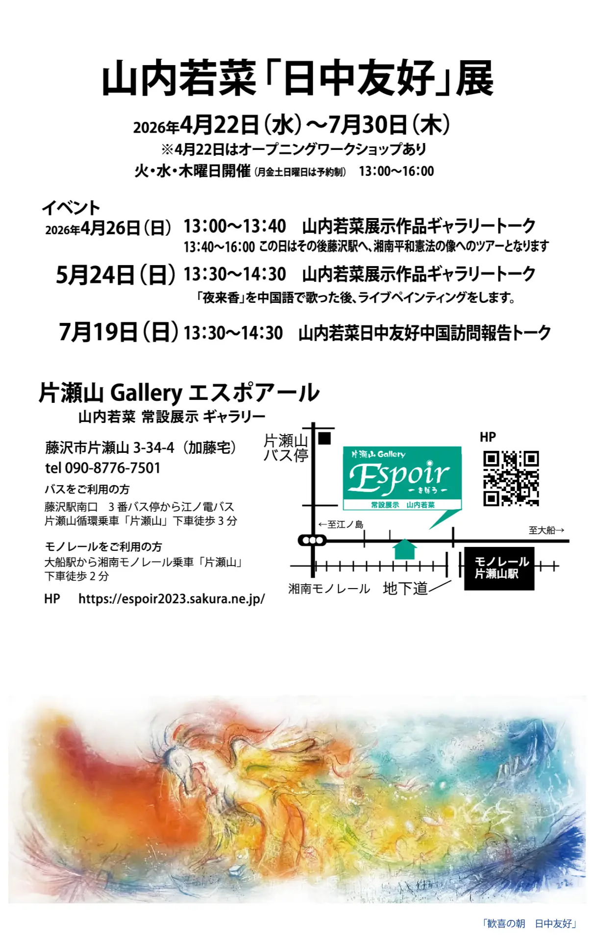片瀬山 Gallery エスポアール webサイト火・水・木曜日開催(月金土日曜日は予約制) 13:00~16:00 ※4/22(水)はオープニングワークショップあり